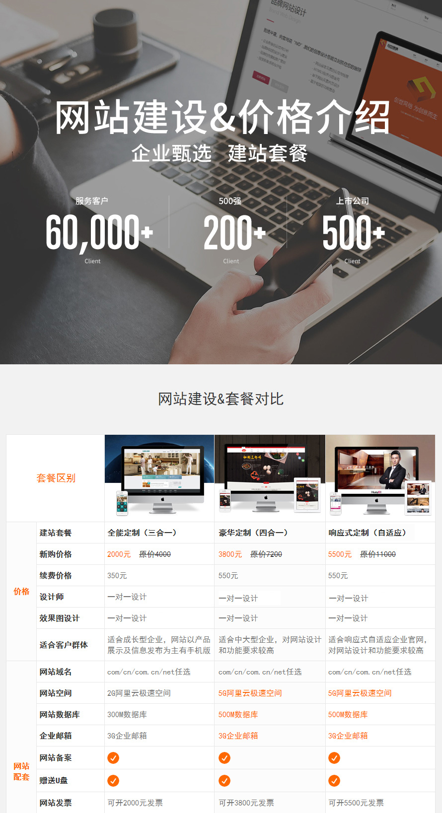 3、我们的模板建站产品装修全包。现在市面上3000元以内的的网站建设,基本都是只提供一个基本模板,要网站上线,还需要您自己去看教程,学习模板的使用,学习加上装修,起码要花费半个月时间。如果没有一定的美术功底,改好的网站可能色调搭配很不和谐。可能花几百块钱,建一个完全没意义的网站。到头来还要花几千元找人做。
